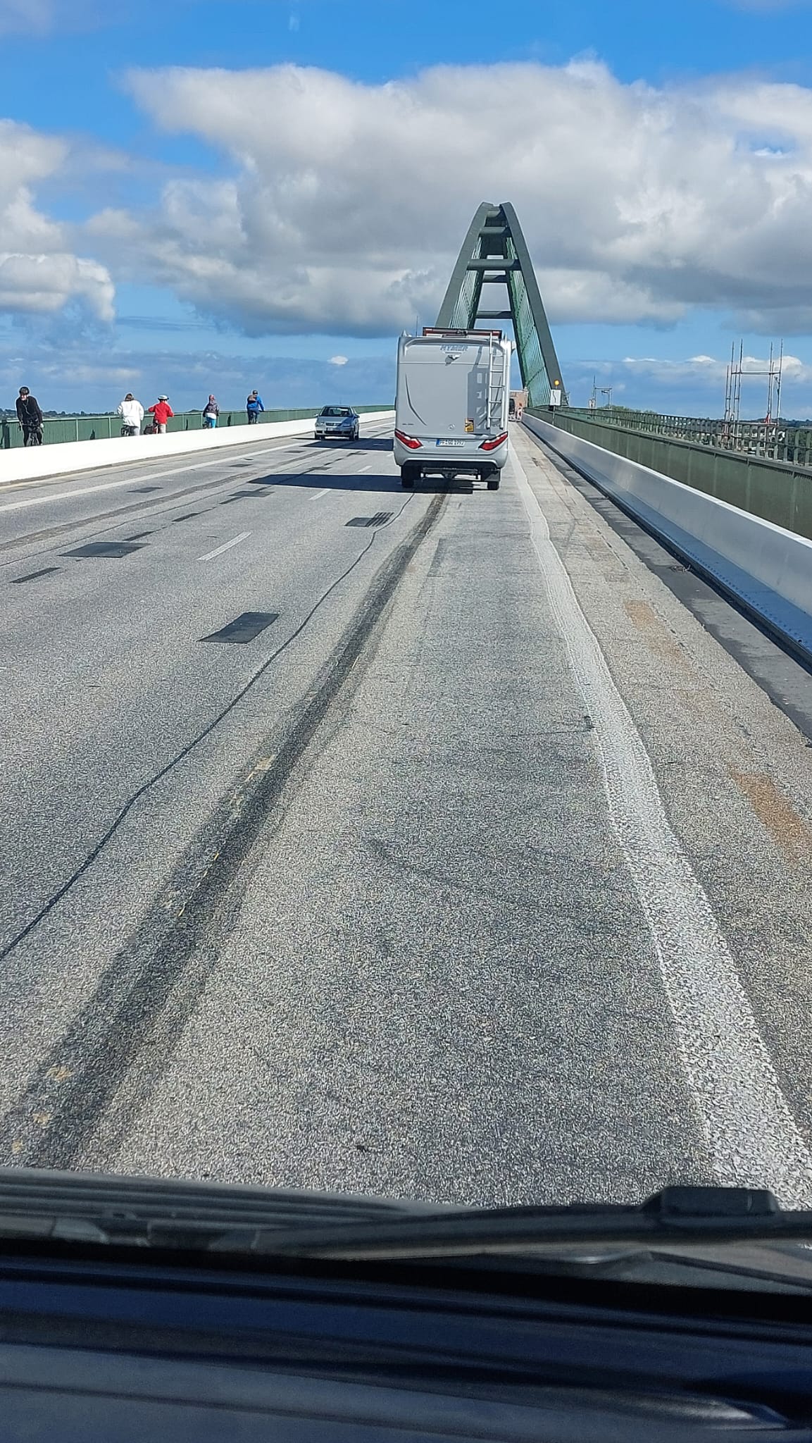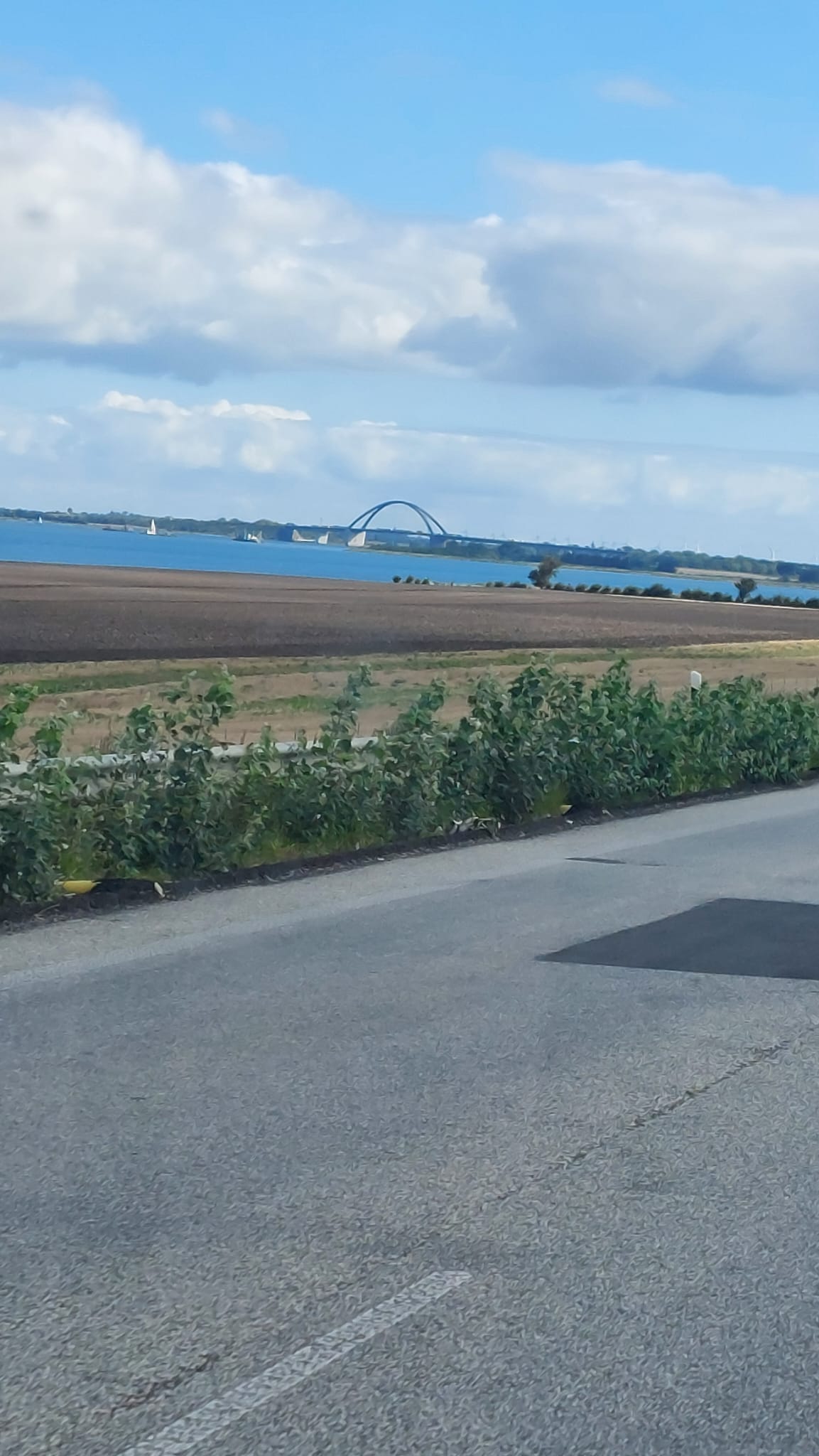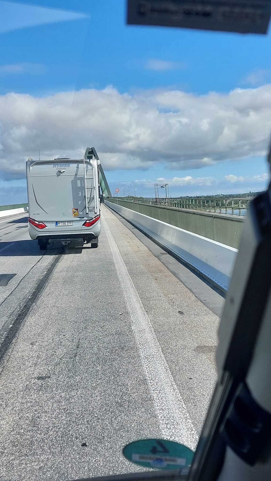 Also Routenplaner geändert und ab nach Puttgarden. Zuerst mal über die große Brücke, die im Moment saniert wird und man dort teilweise nur 50 oder sogar 30 km/h fahren kann.