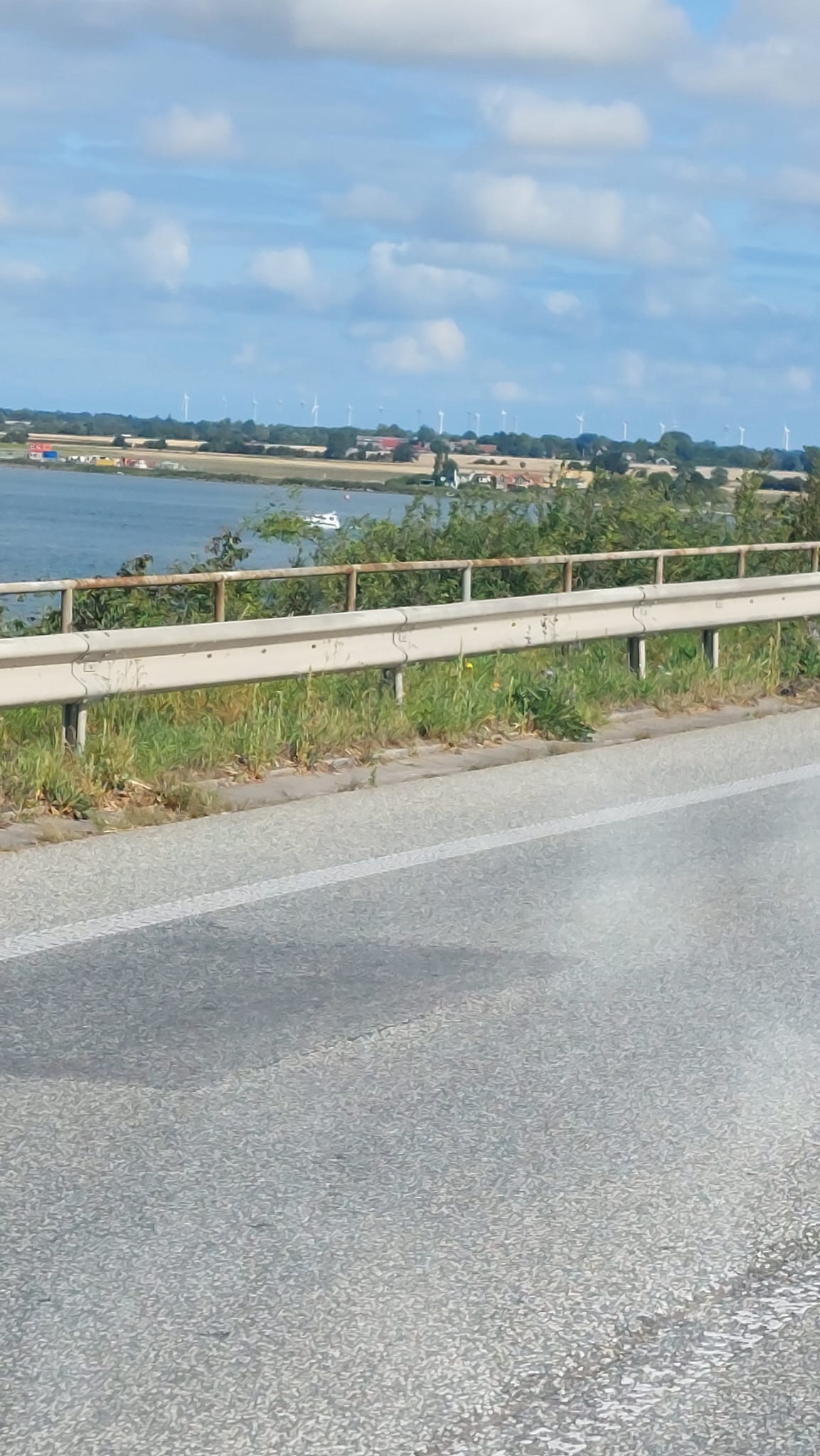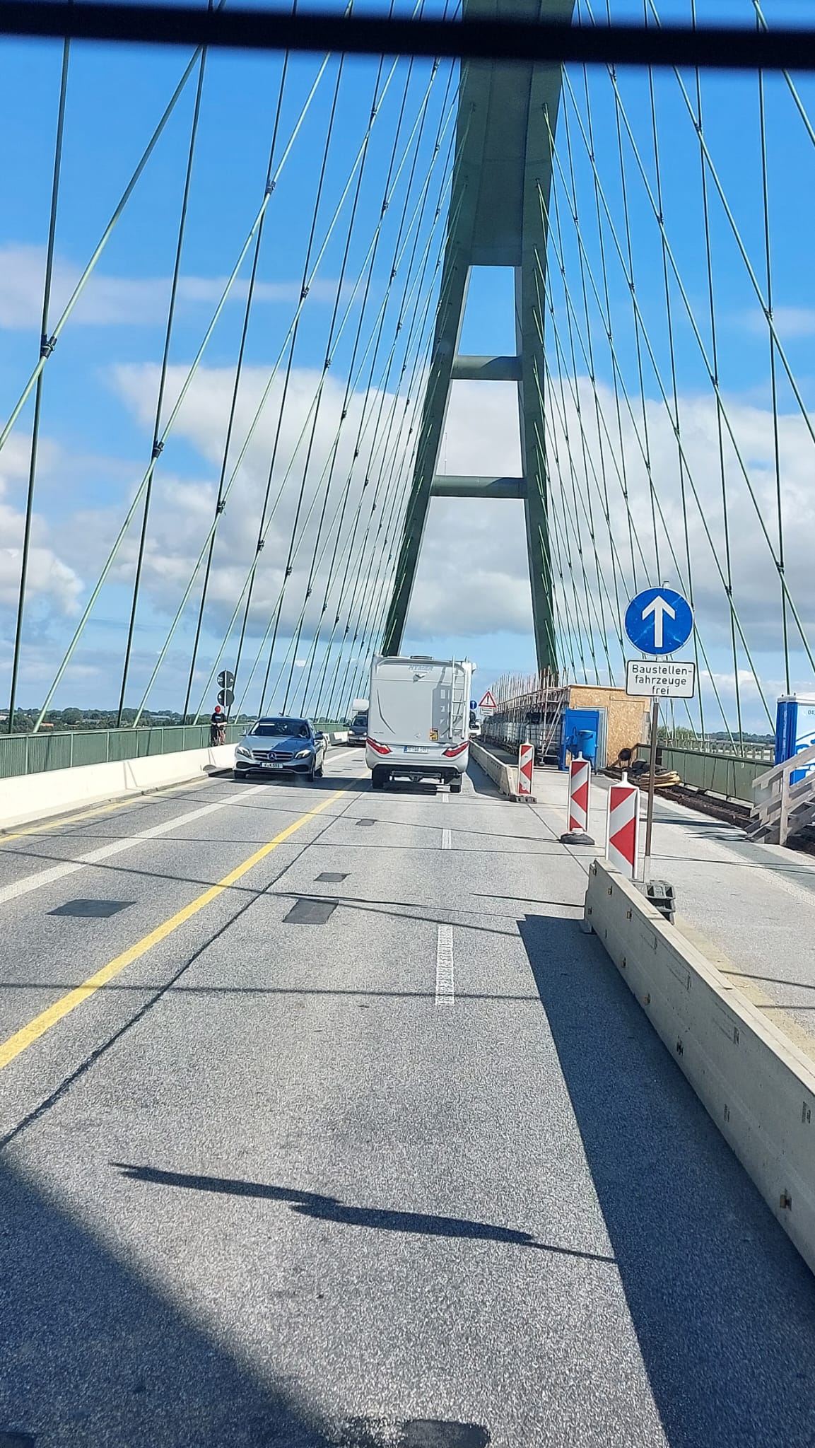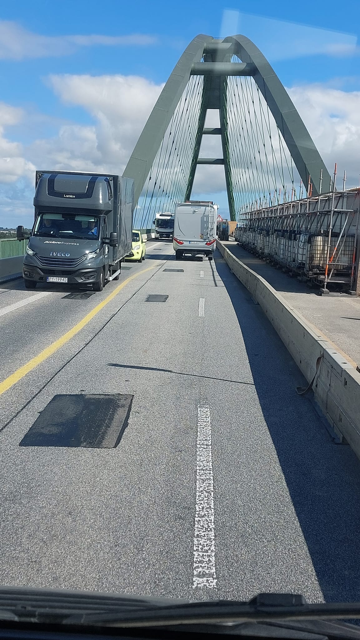 Also Routenplaner geändert und ab nach Puttgarden. Zuerst mal über die große Brücke, die im Moment saniert wird und man dort teilweise nur 50 oder sogar 30 km/h fahren kann.