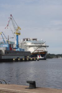 Heute ging es von Dassow nach Börgerende-Rethwisch zur Tante meiner Frau, wo wir im Hof für zwei Tage bleiben. Vorher aber sind wir noch nach Wismar um uns ein bisschen in Wismar umzuschauen. Aber zuerst einmal hatte ich am Vorabend gelesen, das die "Disney Adventure" im Hafen liegen soll und die Probefahrt um ein paar Tage verschoben wird. Also nichts wie hin in den Hafen und mal sehen wie groß das Schiffchen den ist. Leider konnte man nicht direkt ans Schiff, aber von der anderen Seite des Hafen konnte man die Disney auch gut sehen. Danach gings dann in die Alt- und Innenstadt zum Sightseeing. Da wir fast regelmäßig die Sendung "Soko Wismar" sehen, wollten wir natürlich auch die Dienststelle der Soko finden und uns einmal ansehen. Dort angekommen war die Enttäuschung groß. Das was man im Film immer als großes Tor sieht in dem die Polizeifahrzeuge reinfahren, entpuppte sich als kleine Enge Einfahrt. Die Bilder der Dienststelle selber werden in Berlin Adlerforst gedreht. Na gut, man war dort und hat es gesehen. Dann noch kurz durch die Altstadt und dann wieder in Richtung Hafen, dort wo wir unser Womo abgestellt hatten und weiter nach Börgerende-Rethwisch. |
