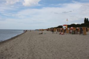 Heute mal wieder Glück gehabt. In Scharbeutz auf dem Stellplatz angekommen, haben wir den letzten freien Stellplatz bekommen. Zwar direkt an der Einfahrt, dafür nur einen Sprung vor den Sanitären Einrichtungen. Den Stellplatz kann man, wen das Büro nicht besetzt ist und man nur für einen Tag bleibt, am Parkscheinautomat für € 22,00 lösen. Leider war der Versuch die Sat Anlage auszurichten ohne Erfolg. Das ist hier auf dem Stellplatz bei vielen Plätzen so, da es hier sehr viele Bäume gibt. Die geben zwar Schatten aber der Sat Empfang ist teilweise gleich Null. Aber egal, dann schauen wir hat mit dem Internet Fernsehen. Nach dem wir unser Womo aufgestellt hatten, zuerst einmal die Räder runter und in Richtung Timmendorfer Strand gefahren. Mal sehen wo die ganzen Snobs so rum laufen. Aber davon war nicht all zu viel zu sehen. Das einzige was darauf hinwies waren die vielen Luxusgeschäfte. In Timmendorf dann einmal über die Maritim Seebrücke, Fotos machen und etwas den Wind um die Ohren wehen lassen und dann nach einem Stadtrundgang wieder mit den Rädern zurück zum Stellplatz. Vorher aber noch eine Kleinigkeit essen gehen. |